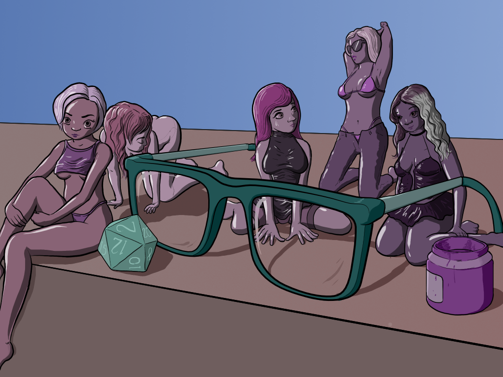 Sex doll miniatures and a D20 in the same illustration? I think we’ve just hit the singularity. Or rapture. Or something.